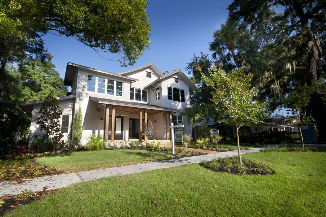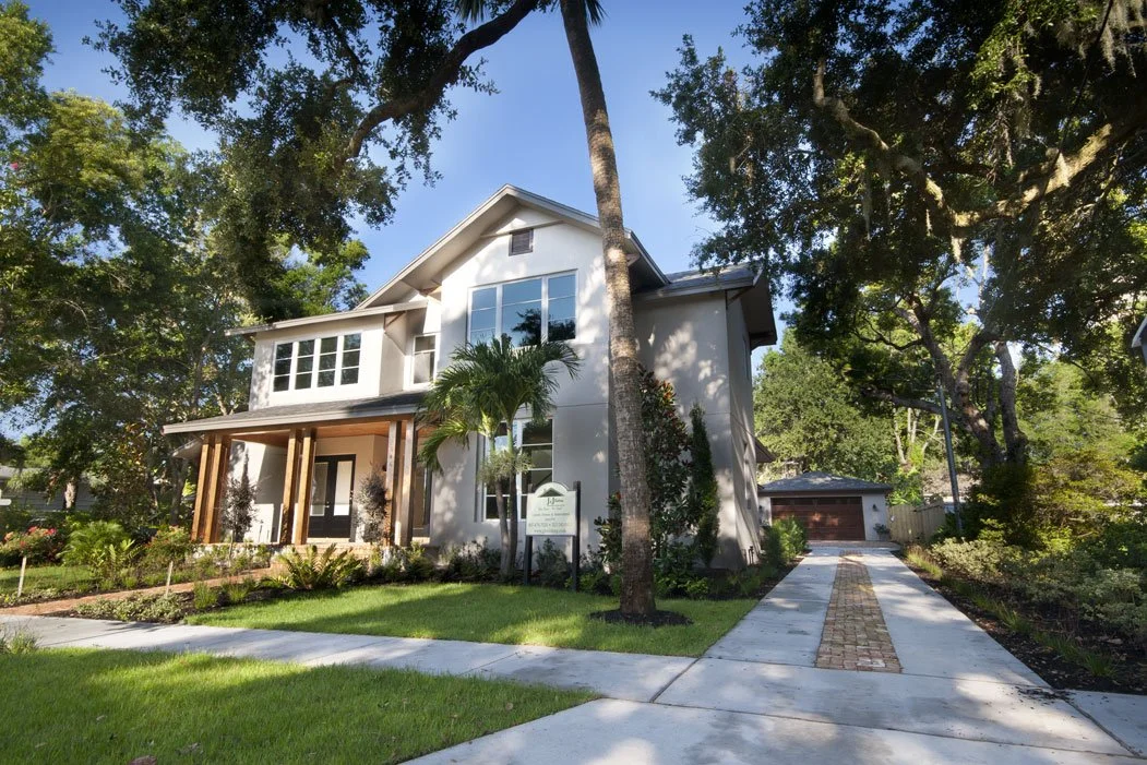 Modernist Craftsman Extra wide overhangs and large juxtaposed brackets help to create a fresh edgier look for this Craftsman.